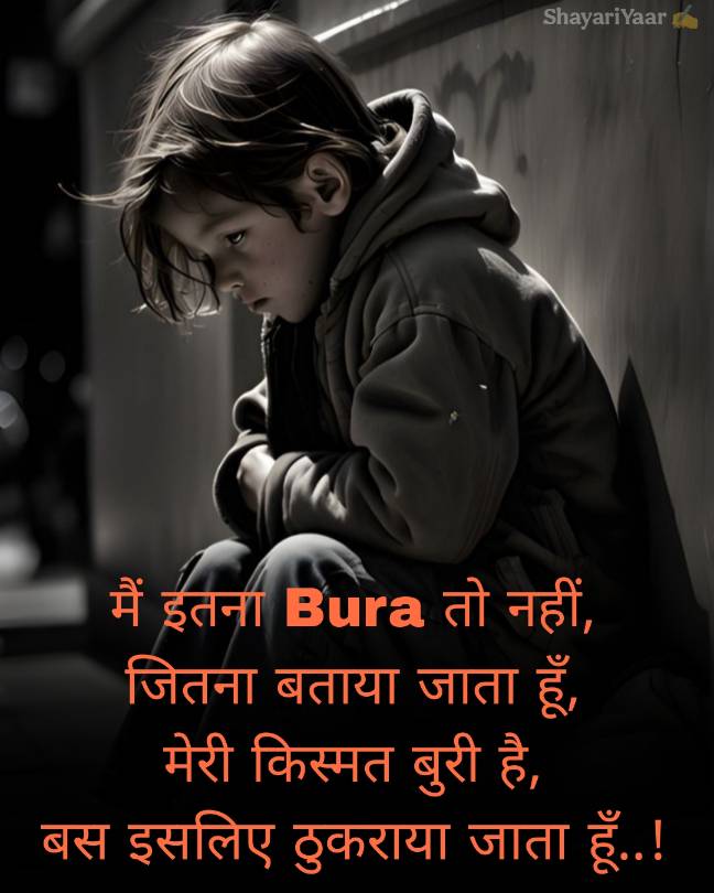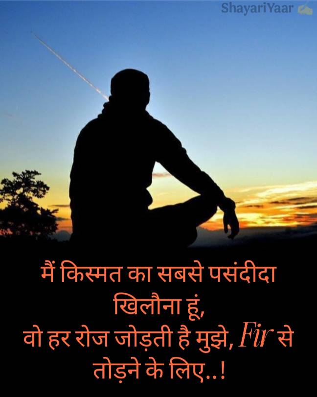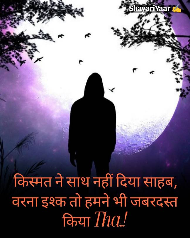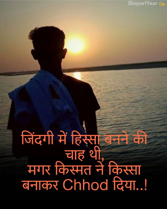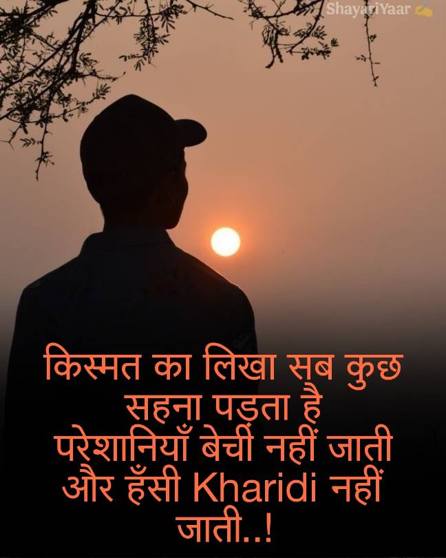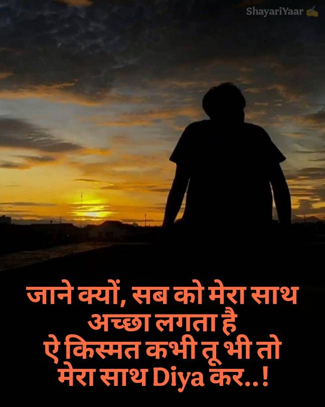 नमस्कार दोस्तों स्वागत है आपका हमारी एक और नई पोस्ट में दोस्त आज हमने इस लेख में खराब किस्मत शायरी साझा की है यह Kharab Kismat Shayari उन लोगों के लिए है जिनकी किस्मत खराब है। खराब किस्मत वाले लोग कुछ अच्छे कार्य करने जाते हैं तो वह कार्य बुरे साबित होते हैं। ऐसा लगता है कि जिंदगी में बहुत कुछ गलत हो रहा है। कोई भी हमारा साथ नहीं देता हमारे अपने भी छोड़ कर चले जाते हैं। जब हमारी किस्मत साथ नहीं देती जब किस्मत खराब होती है तो हम इसे खराब किस्मत कहते हैं। खराब किस्मत वाले लोग अक्सर जिंदगी में परेशान रहते हैं ऐसी स्थिति में ये शायरी आपके मन की बात कहेगी। आपको यहां पर सबसे बेस्ट खराब किस्मत शायरी पढ़ने को मिलेगी जो आपको बढ़ावा देगी और खुशी का एहसास दिलाएगी। दोस्तों यह खराब किस्मत शायरी हमने बहुत ही मेहनत से आपके लिए लिखी है इसे जरूर पढ़ें, में आशा करता हूं कि आपको हमारी यह Kharab Kismat Shayari पसंद आएंगी दोस्तों आप इसे अपने व्हाट्सएप स्टेटस पर भी लगाएं ताकि आपके दोस्त भी हालात का पता चले कि आप किस वक्त से गुजर रहे हैं।
